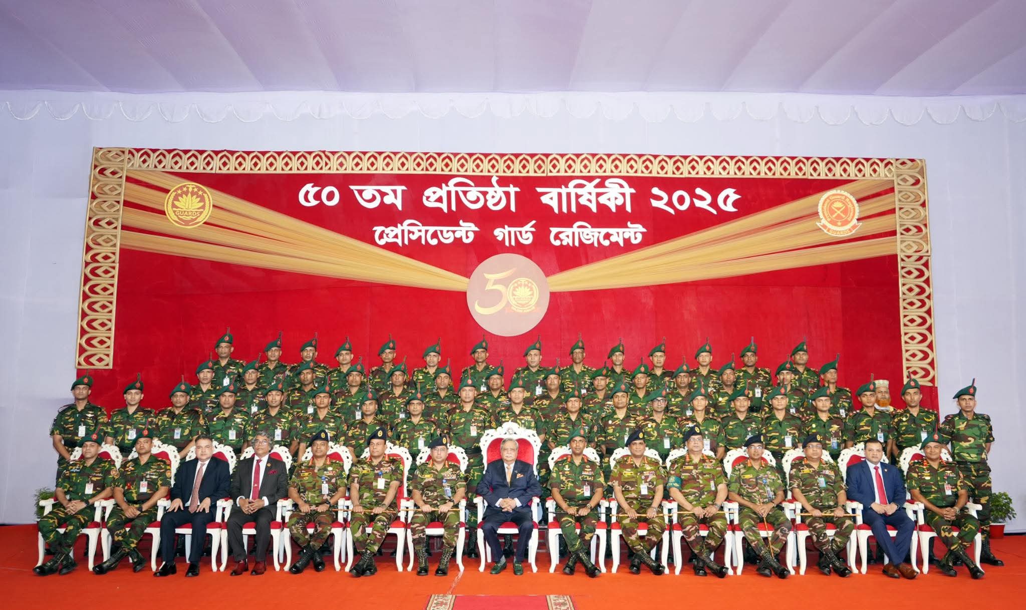 প্রবাস বাংলা : যথাযথ উৎসাহ ও উদ্দীপনার মধ্য দিয়ে প্রেসিডেন্ট গার্ড রেজিমেন্ট (পিজিআর) এর সুবর্ণ জয়ন্তী তথা ৫০তম প্রতিষ্ঠা বার্ষিকী পালিত হয়।