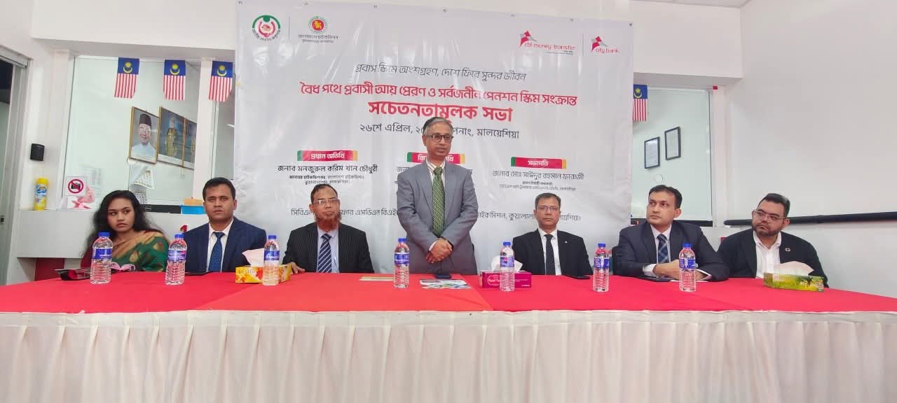 পিবিএন ডেস্ক : বৈধ পথে প্রবাসী আয় (রেমিট্যান্স) প্রেরণে উৎসাহ প্রদান এবং সার্বজনীন পেনশন স্কিম সম্পর্কে প্রবাসী বাংলাদেশিদের সচেতনতা বৃদ্ধির লক্ষ্যে আজ মালয়েশিয়ার পেনাং এ সিবিএল মানি ট্রান্সফারের স্থানীয় কার্যালয়ে প্রবাসী কর্মীদের অংশগ্রহনে একটি সভা অনুষ্ঠিত হয়।